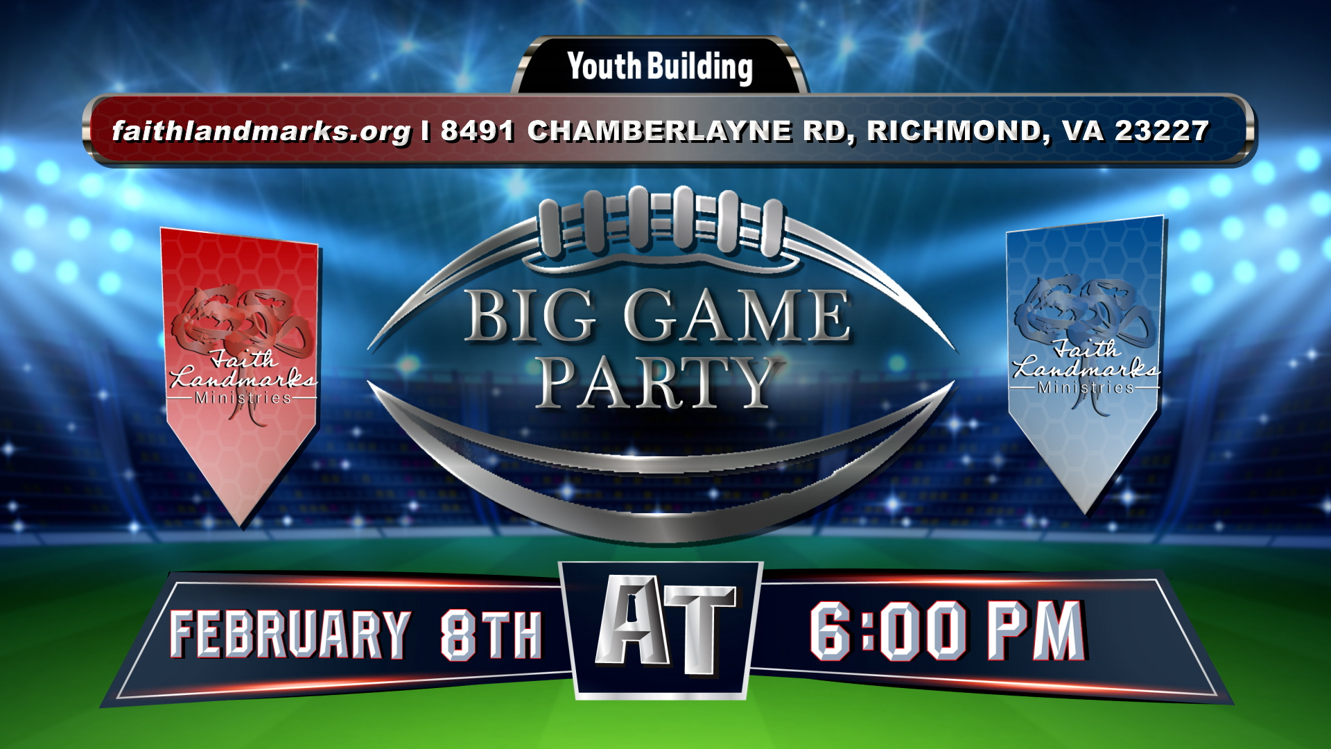 Calling all SRY join us for a night of fun, food, football, and surprises, Sunday, February 8th at 7pm in the YB for our Big Game Party.