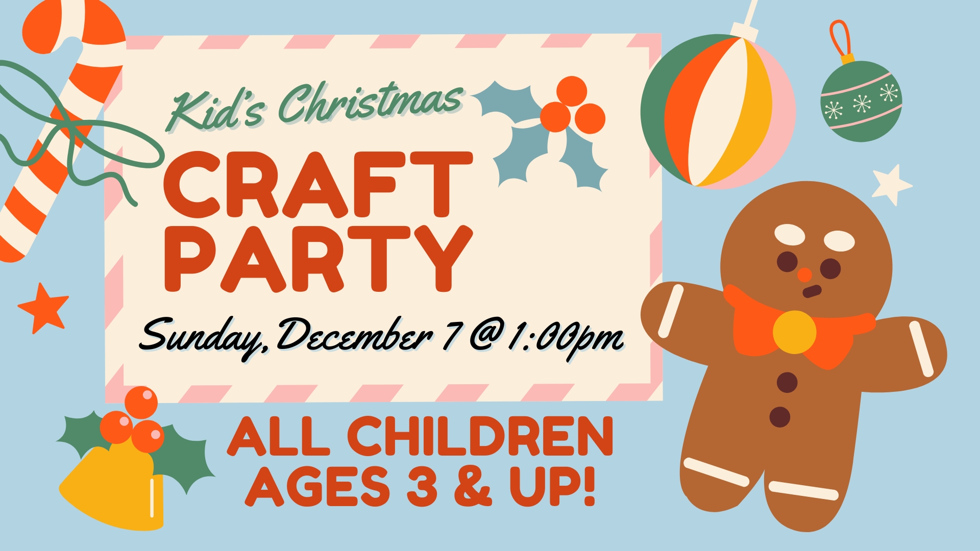 Join us for the FLM Children’s Christmas Craft Party! This is open to all children, ages three and up. Feel free to participate with your child(ren) or you may drop off and pick-up. If you are staying to participate with your child(ren), please register all adults and all children here.