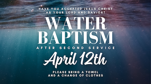 Have you been baptized since you’ve been saved? If not, we are having a Water Baptism Training and Service on Sunday, April 12th, 2026 in the West Wing Gym at 1pm.